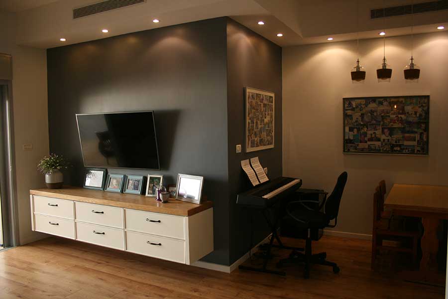 חדר הממ"ד זכה לתכנון של נגרות למקסום החלל לארון חורף ולמשטח משרדי ארוך למחשבים ולמדיה, בכדי להתאימו לחדר מוסיקה.